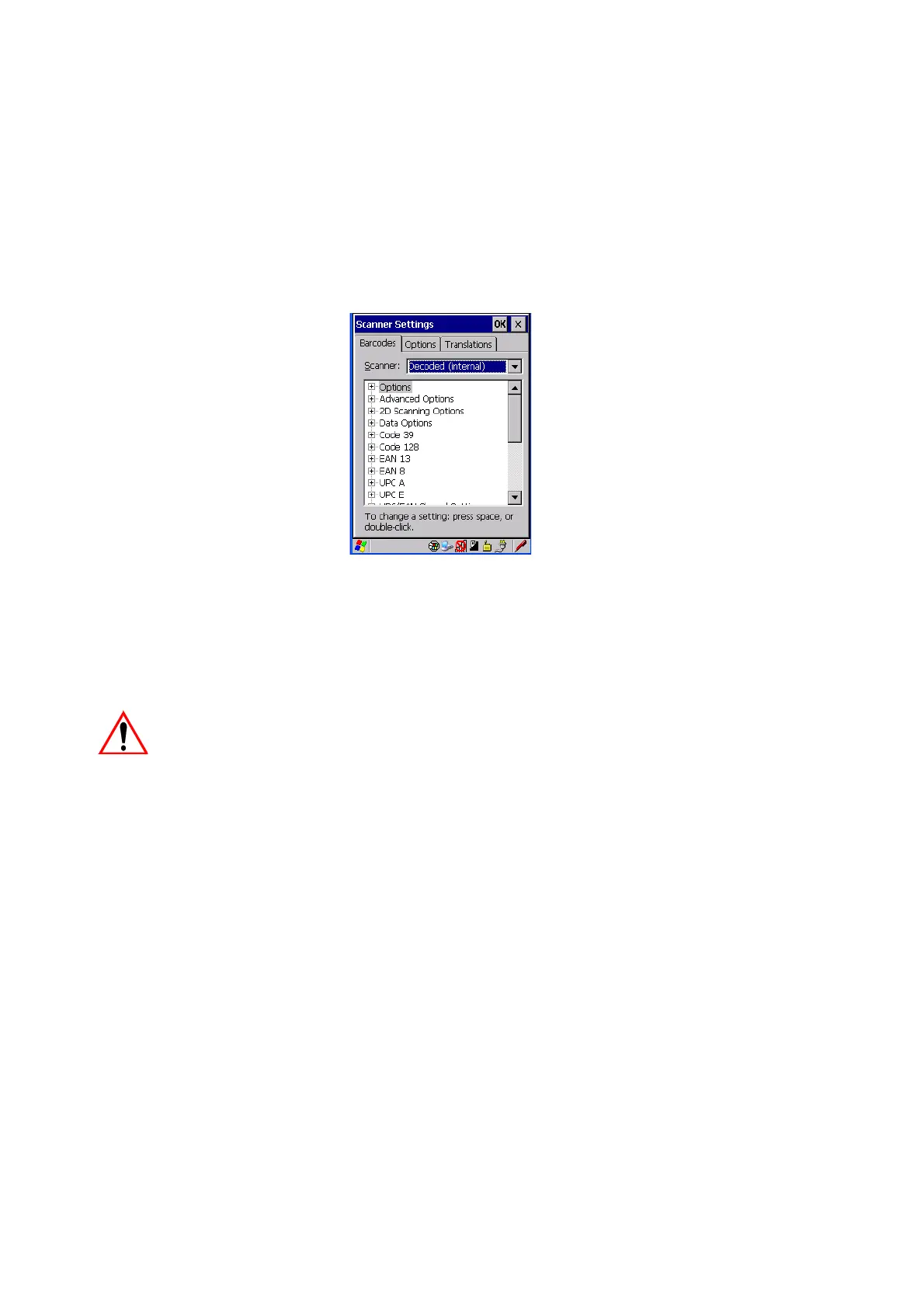one of the following scanner types used with your hand-held: Decoded (internal),