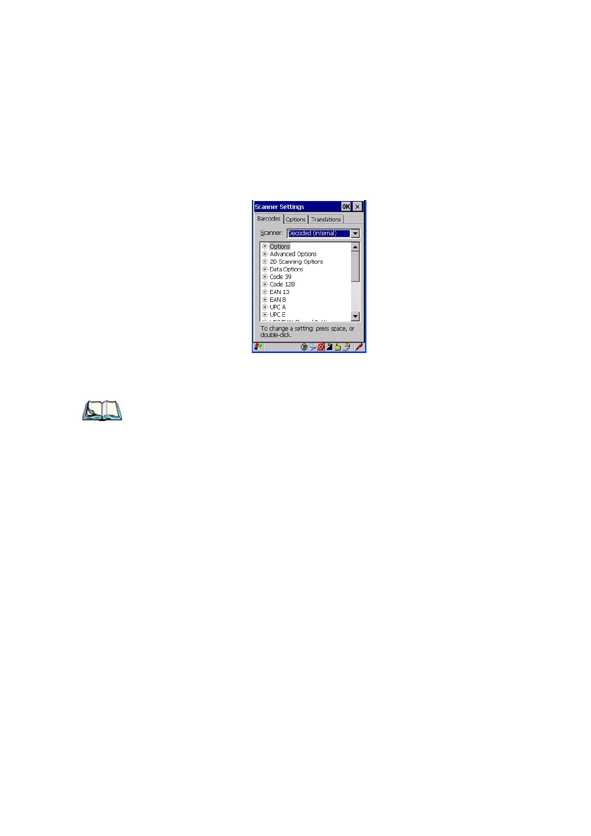 • Tap on the Scanner drop-down menu, and choose Decoded (internal).