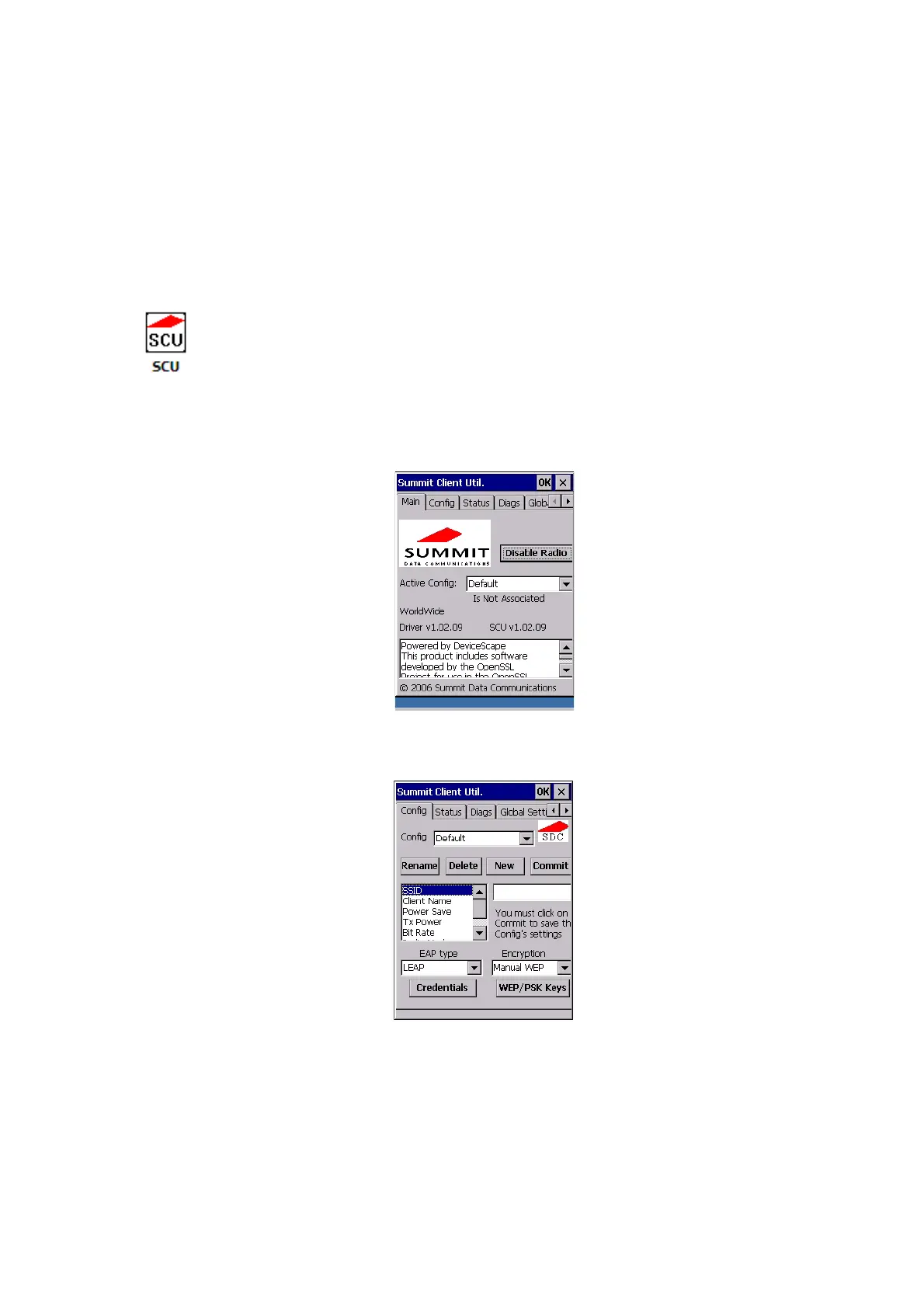 1. Tap on Start>Programs>Summit, and then tap on the SCU icon.