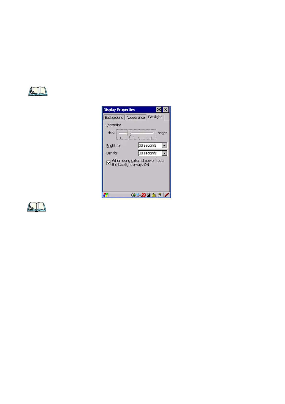 •In the Display Properties dialog box, open the Backlight tab.