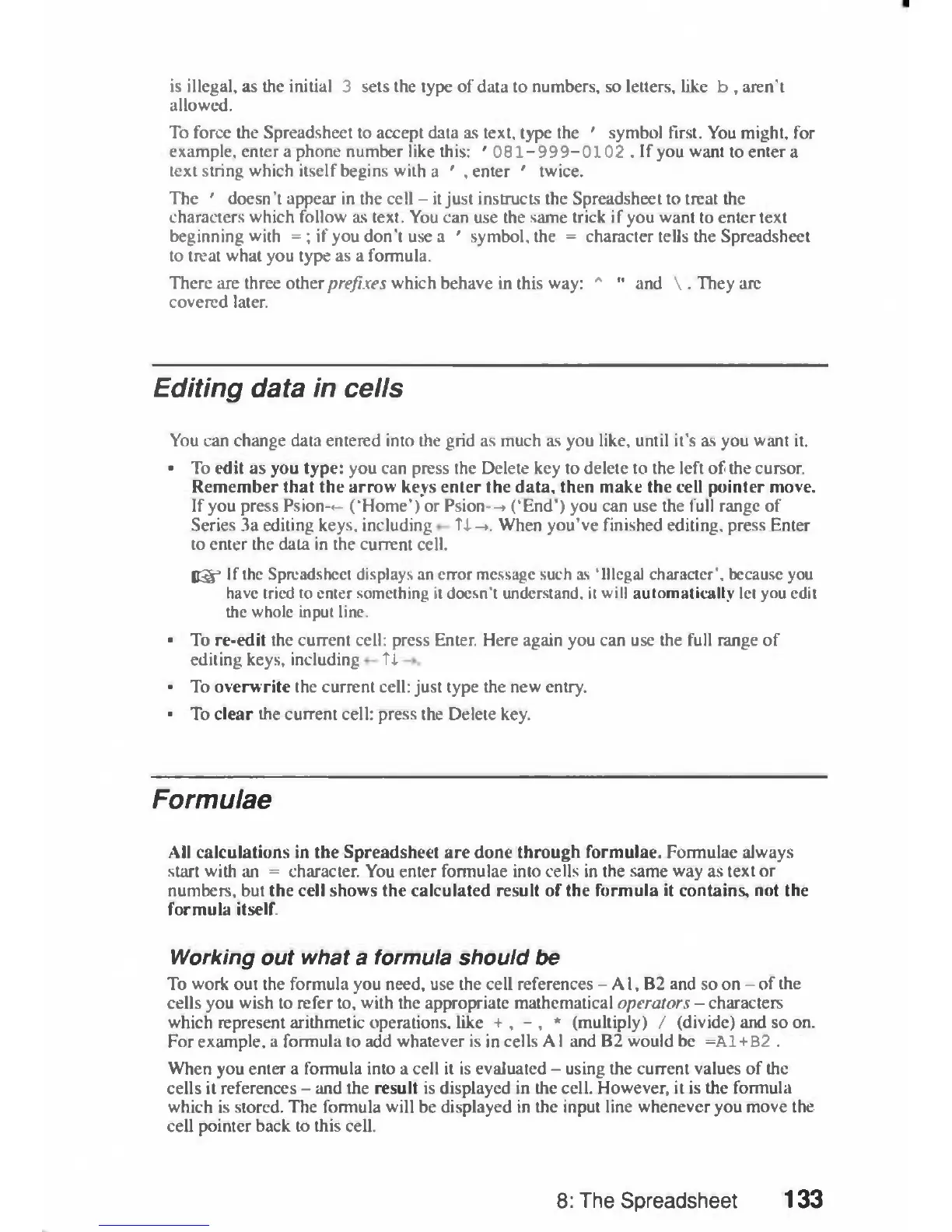 Psion 3a Series - Editing Data in Cells; Formulae