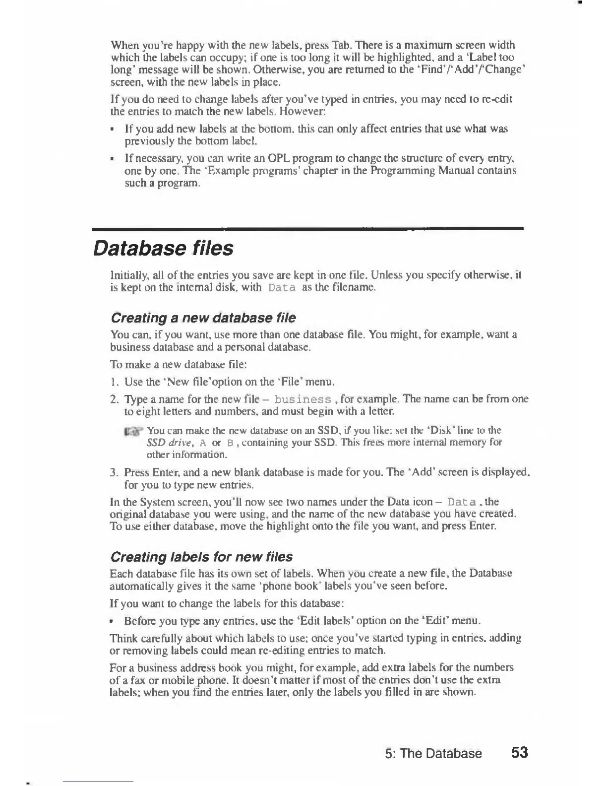 Psion 3a Series - Database files