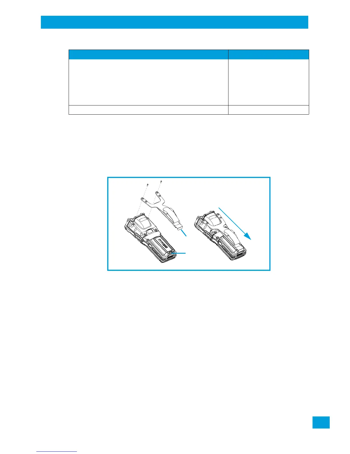 • Attach the strap to the two threaded inserts located at the back of the hand-held near the top of the
