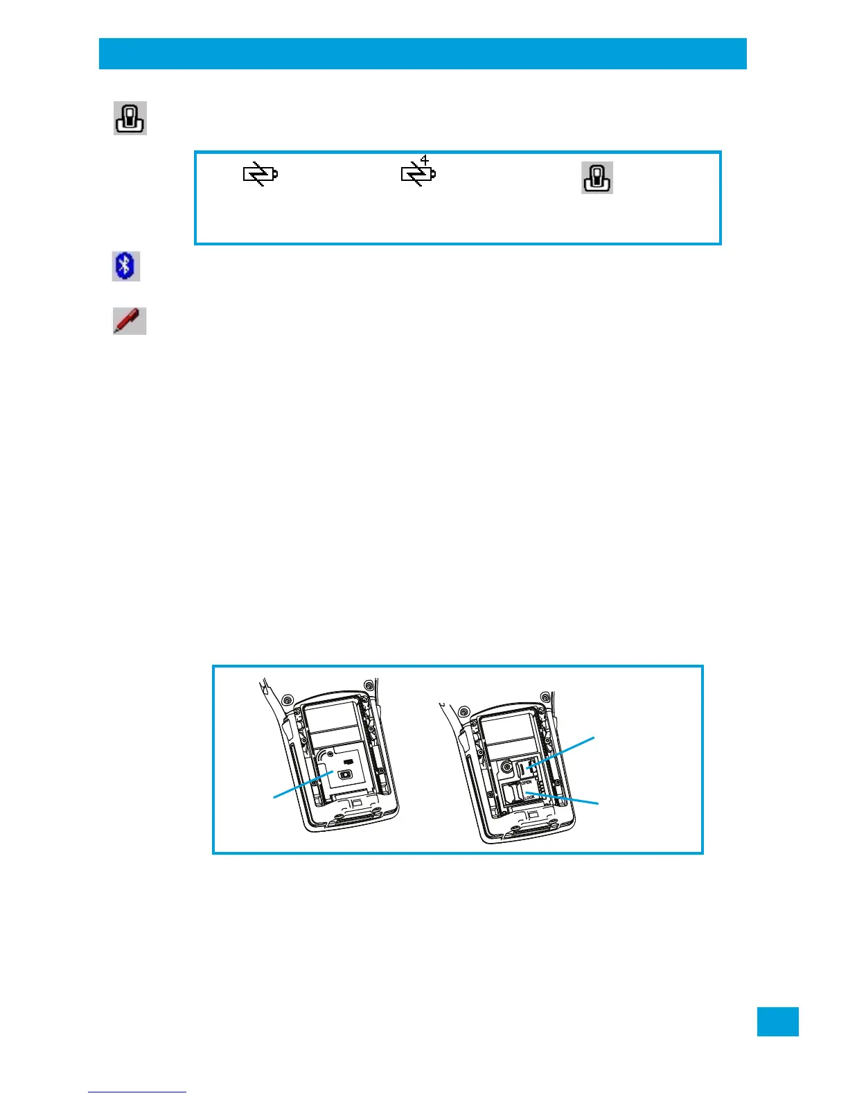 When a hand-held is inserted in a docking station, charger or cradle, an associated icon appears in