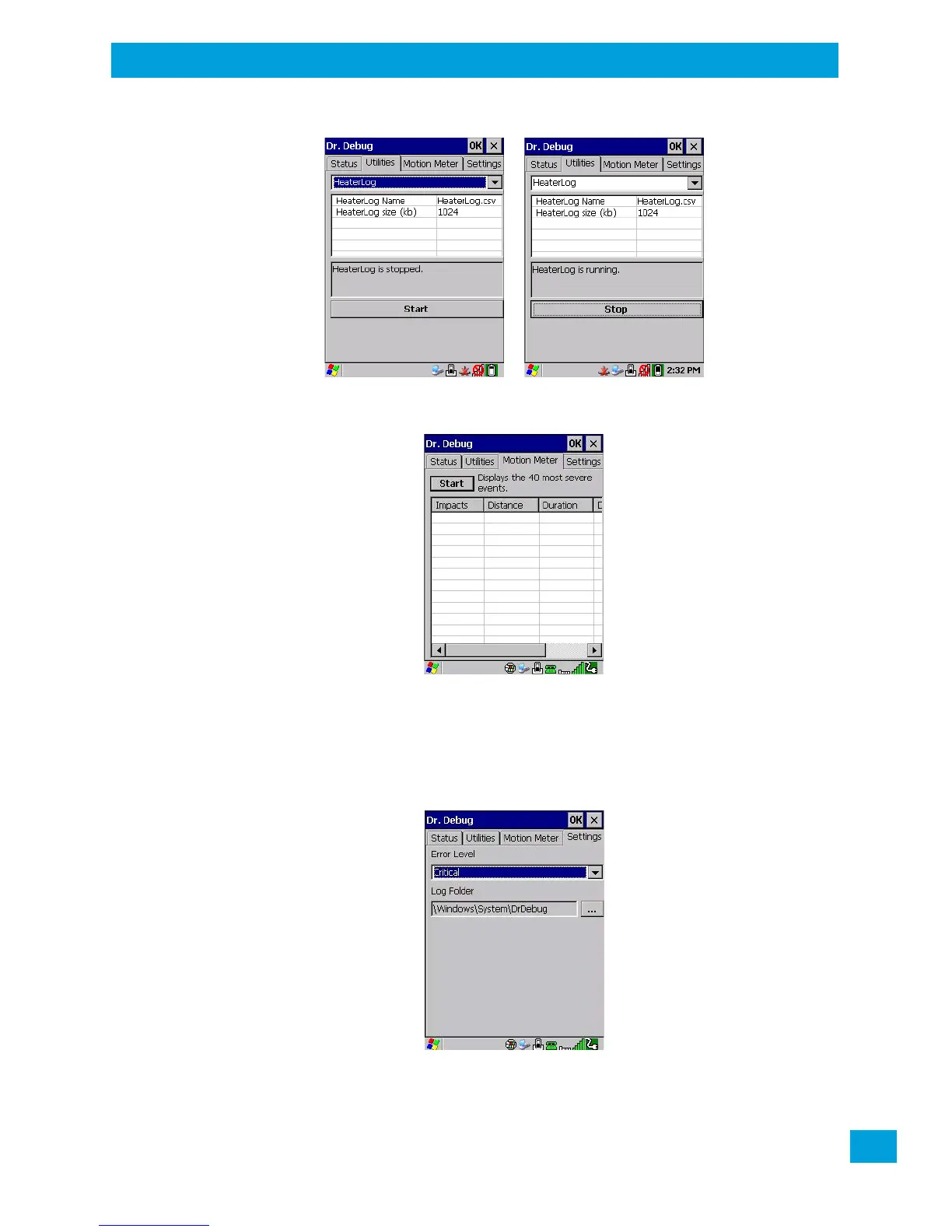 • To change the location where debug information will be stored, tap on the button to the right of the