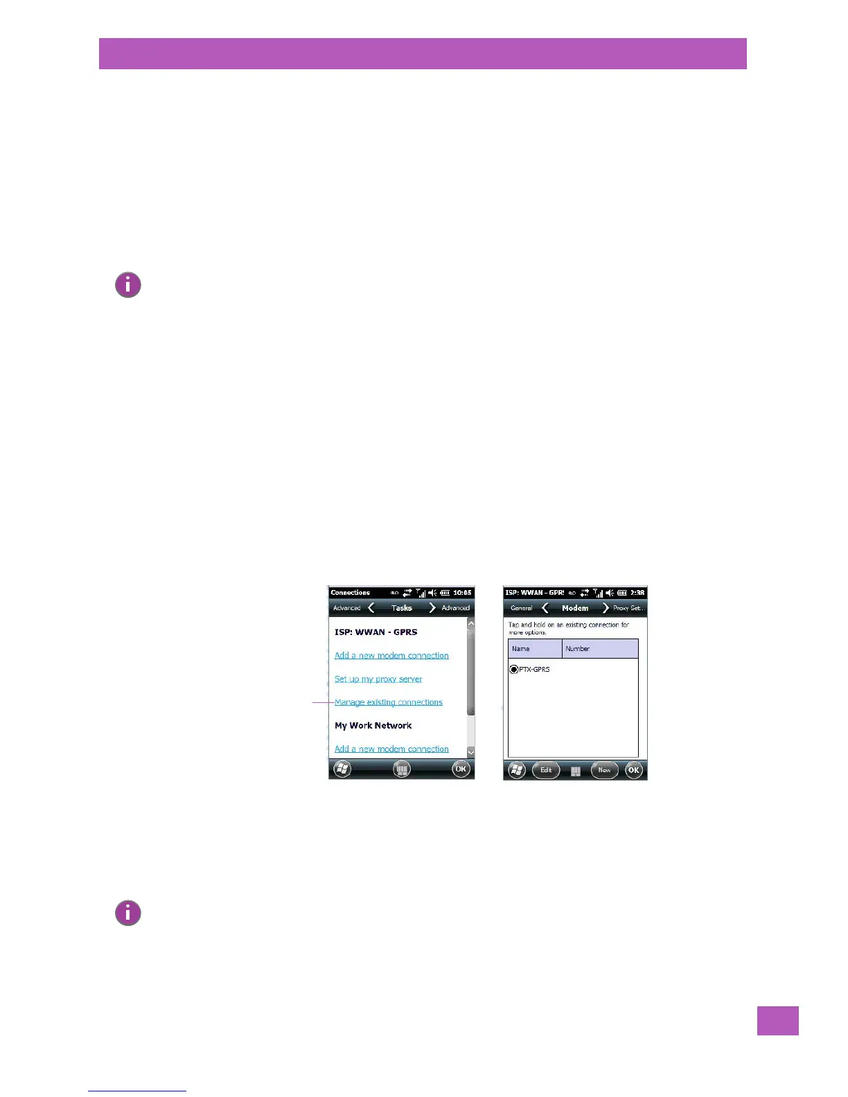 • To launch a connection from this screen, press and hold the stylus on the connection you want to acti-