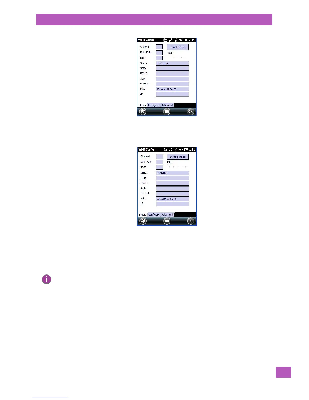 5.8.9.1 Wi-Fi Config: Status Tab