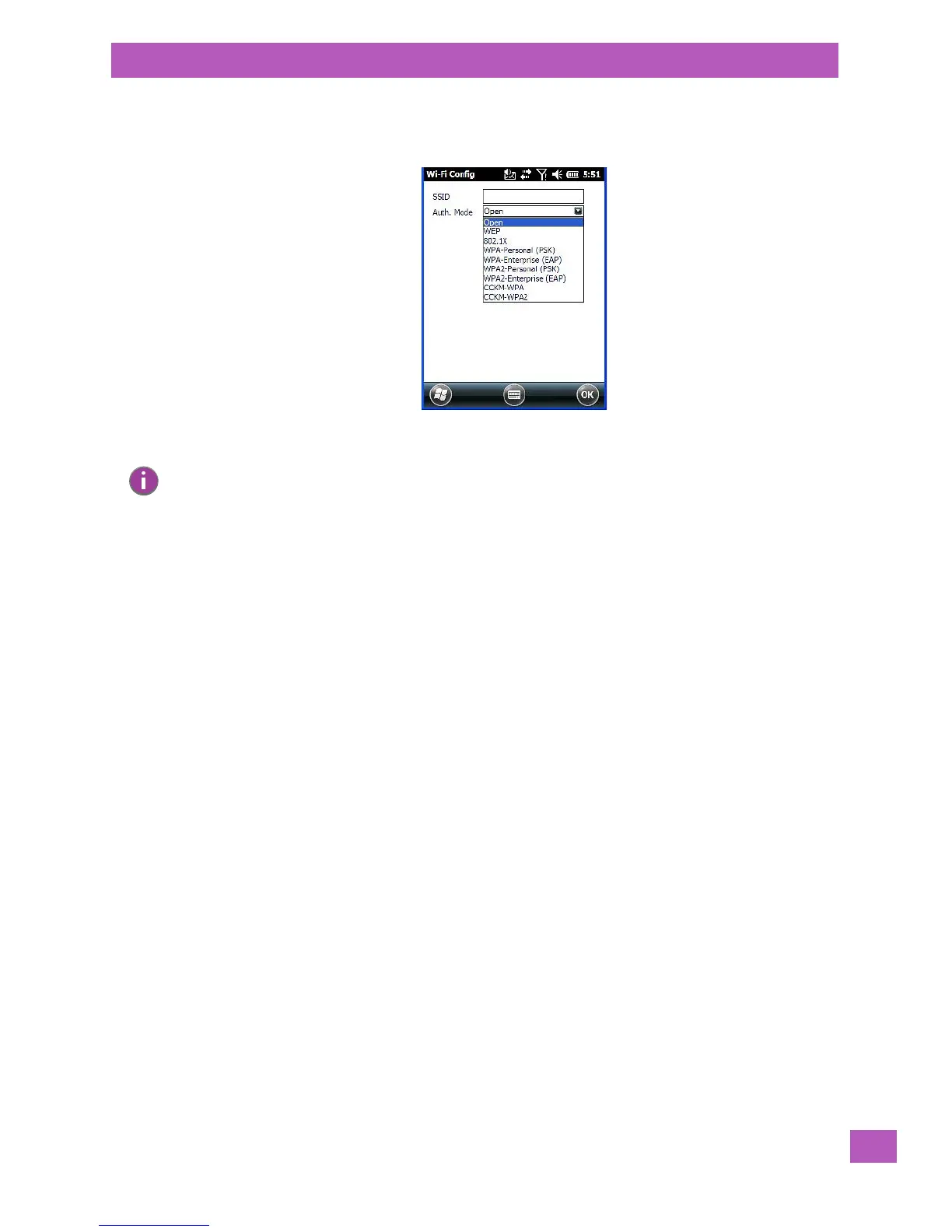 CCKM-WPA, CCKM-WPA2), and 802.1x with EAP. Tapping on the Auth. Mode menu displays your