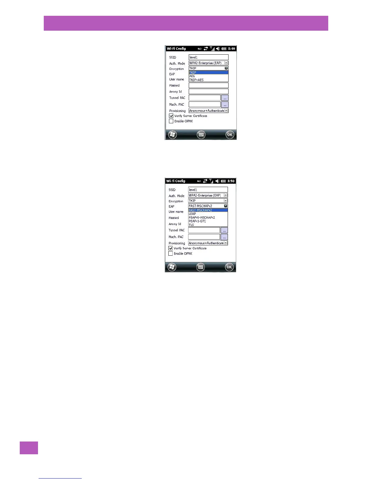 • PEAPv0-MSCHAPv2: Provides secure user authentication by using a TLS tunnel to encrypt EAP traf-