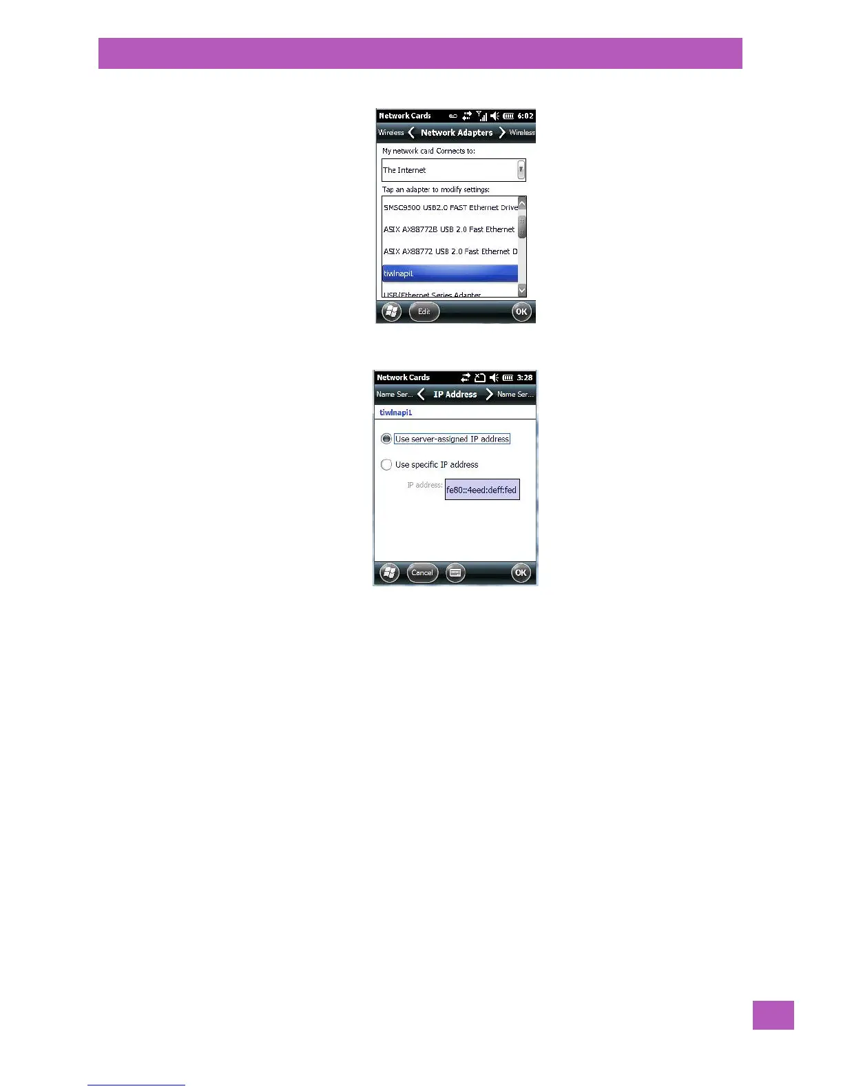 • Tap on Use server-assigned IP address to have an address assigned automatically, or