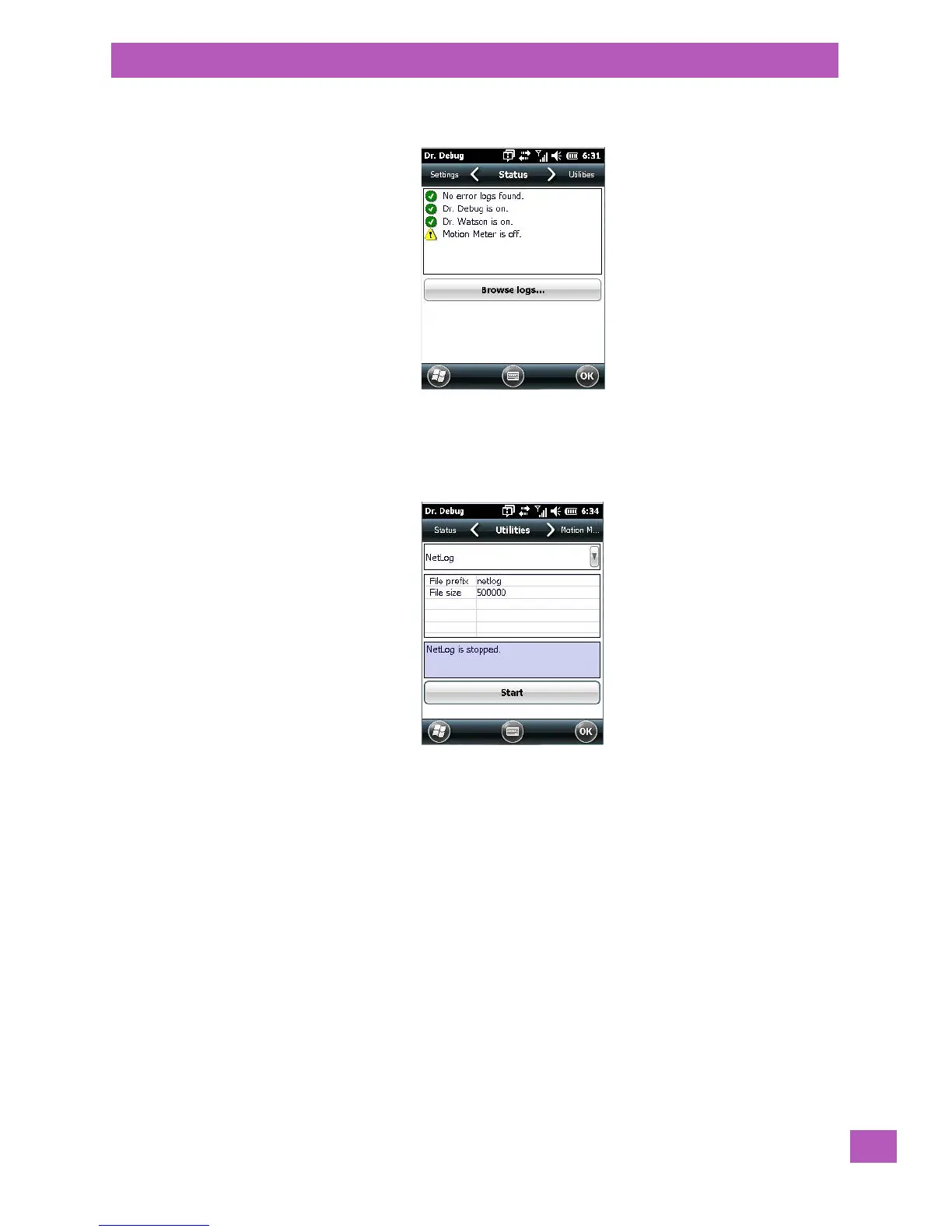 Two utilities are available: NetLog and RilLog. The NetLog utility is used to log network traffic. The RilLog