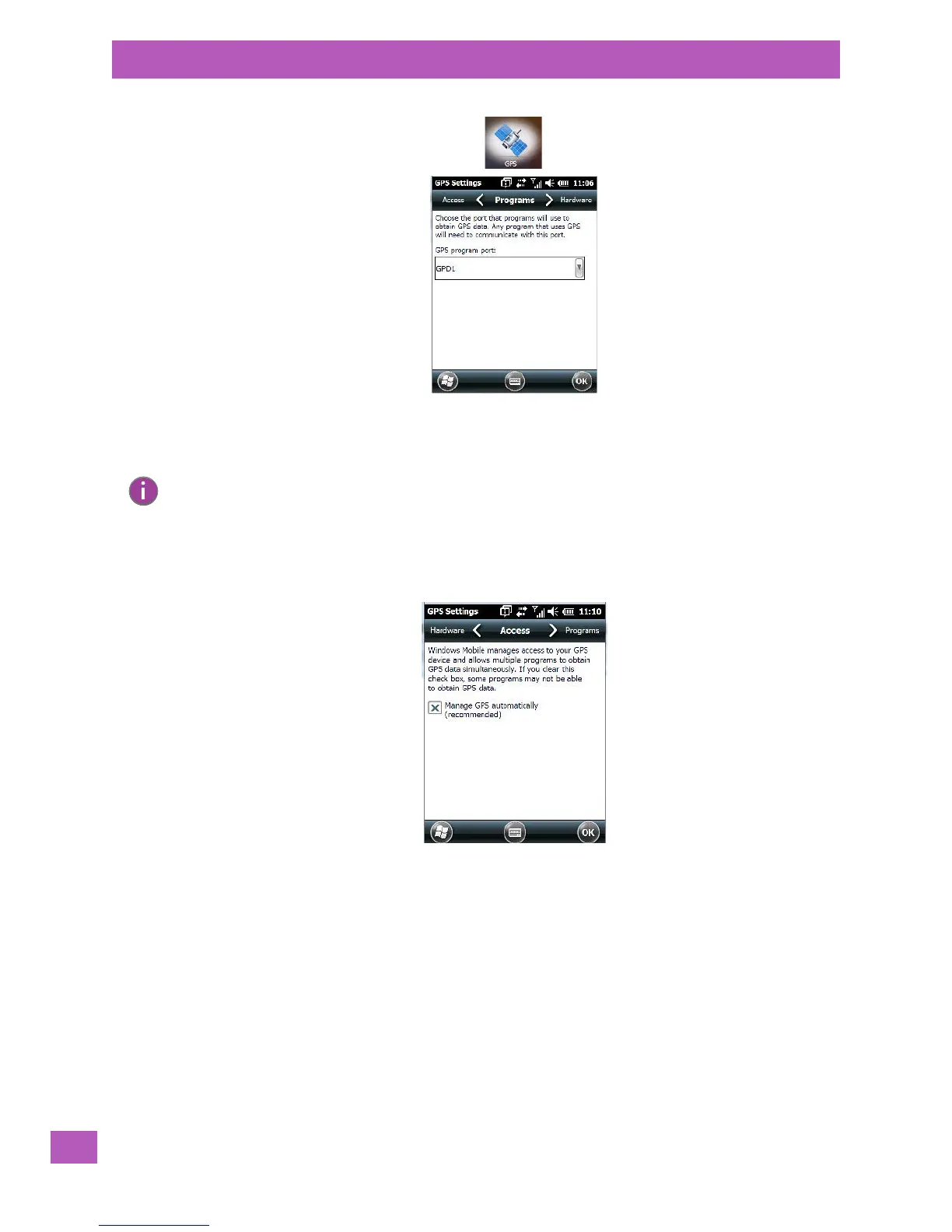 •Tap on the GPS program port drop-down menu, and choose the communication port that the GPS
