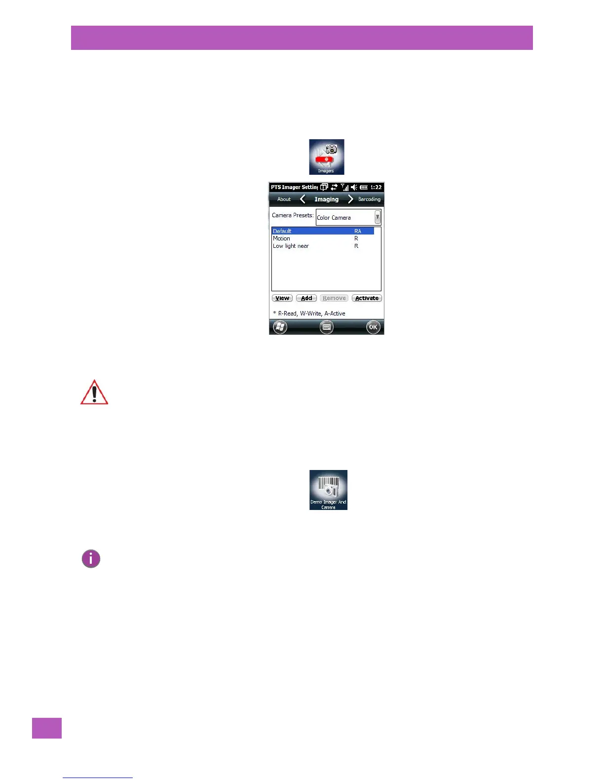 •Tap on Start>Settings>System, and then tap on the Imagers icon.