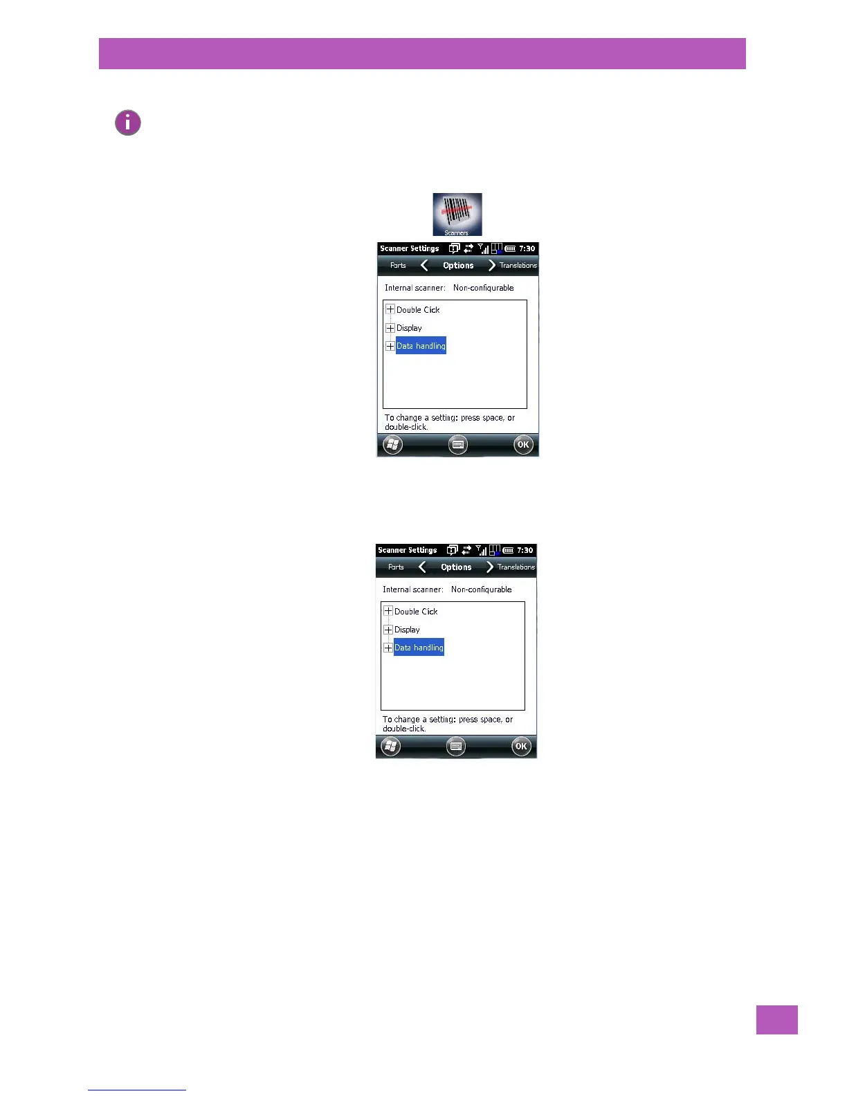 • Tap on Start>Settings, and then tap on the System followed by the Scanners icon.