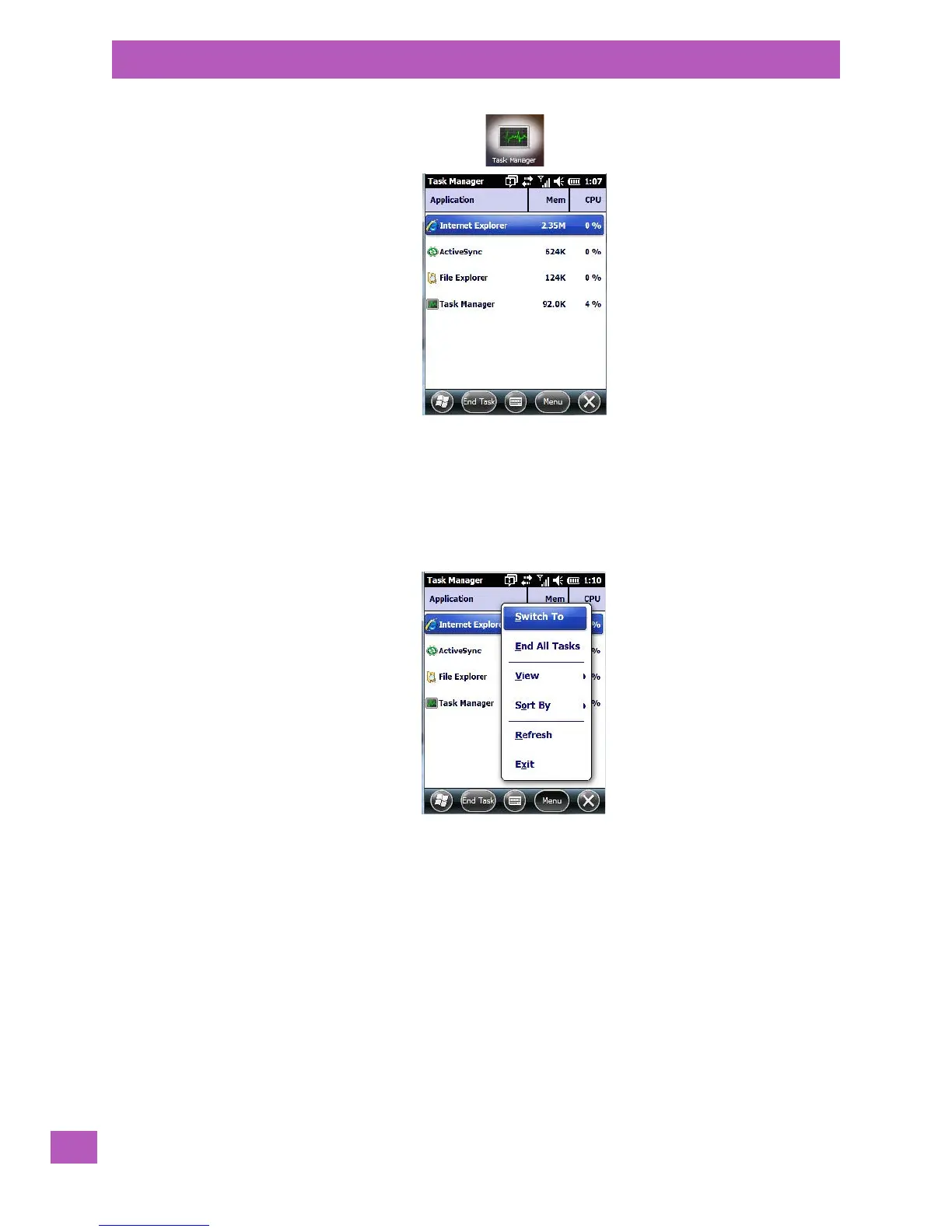 • End Task: To shut down an application, highlight the program in the list, and tap on the End Task