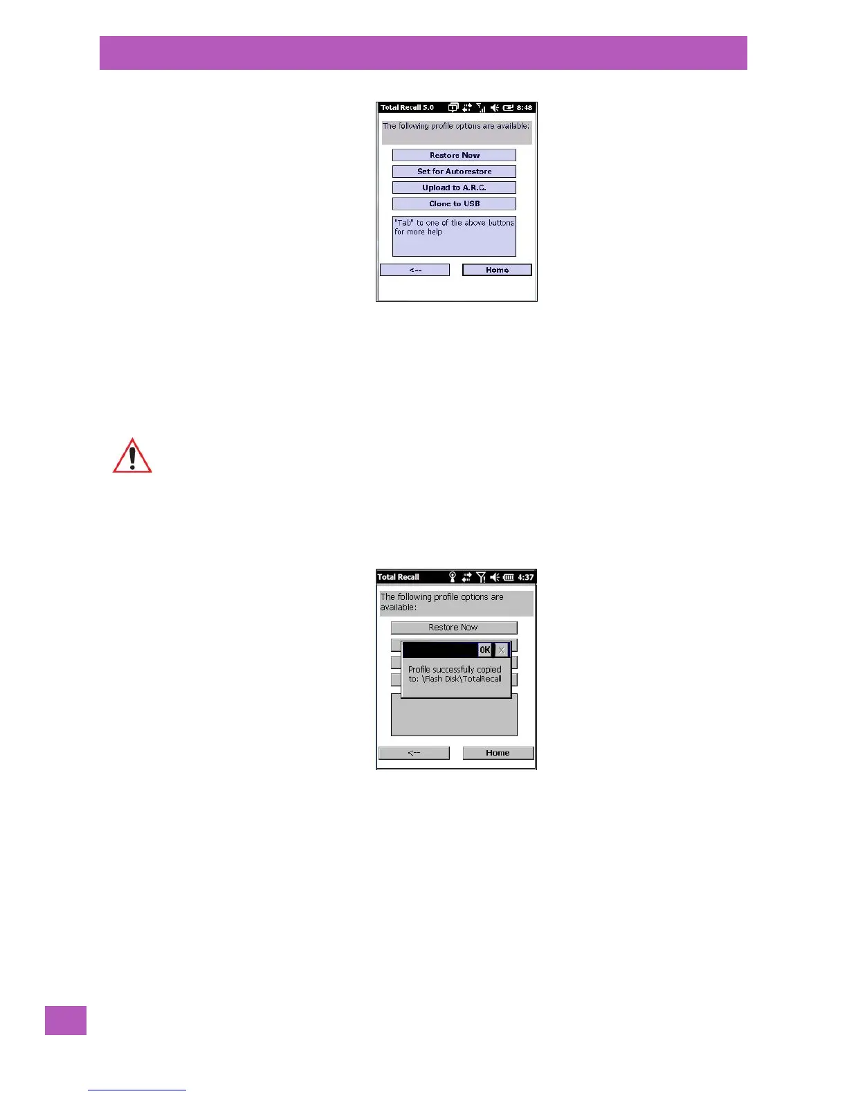 start. The profile is stored in the \Flash Disk\TotalRecall folder.