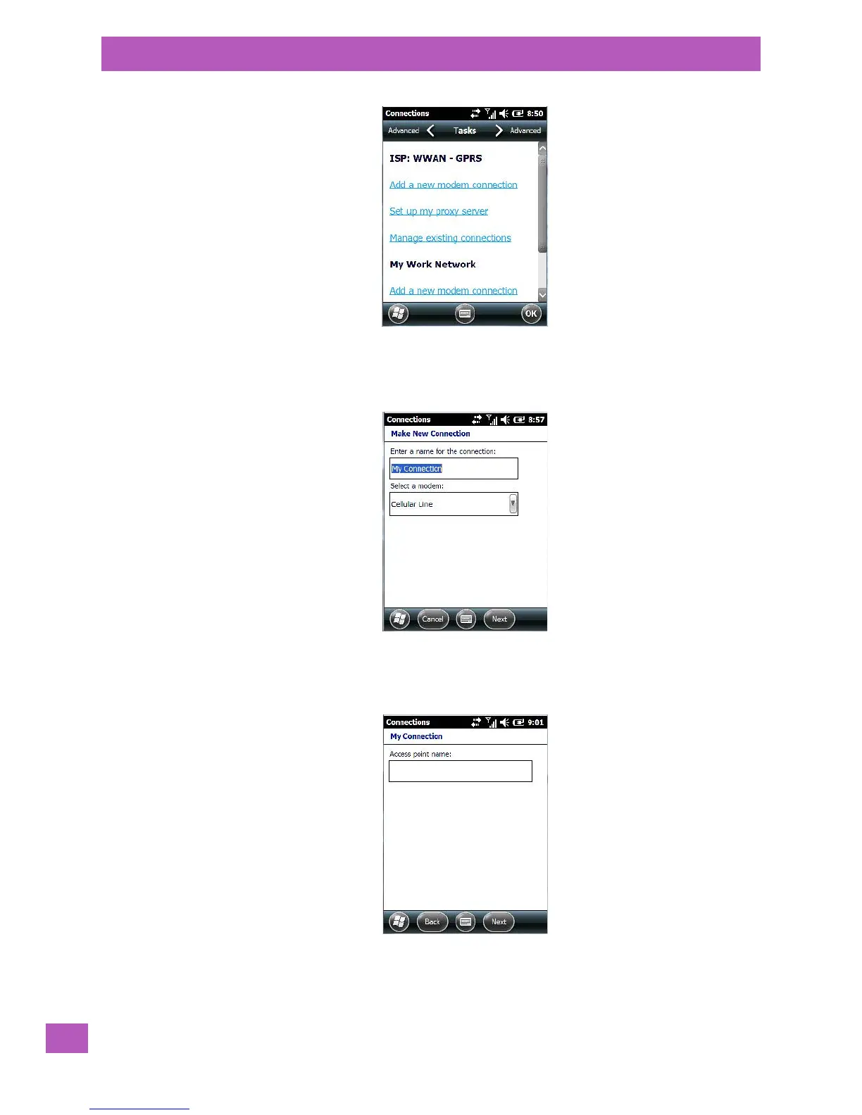 •Choose Cellular Line (GPRS) from the Modem drop-down menu.