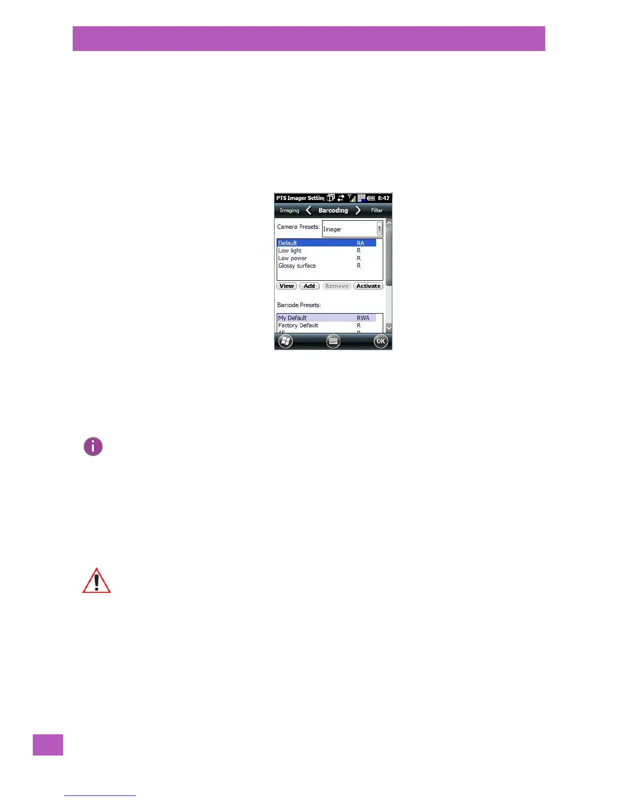 C.4 Configuring the Bar Code Decoding Camera Presets
