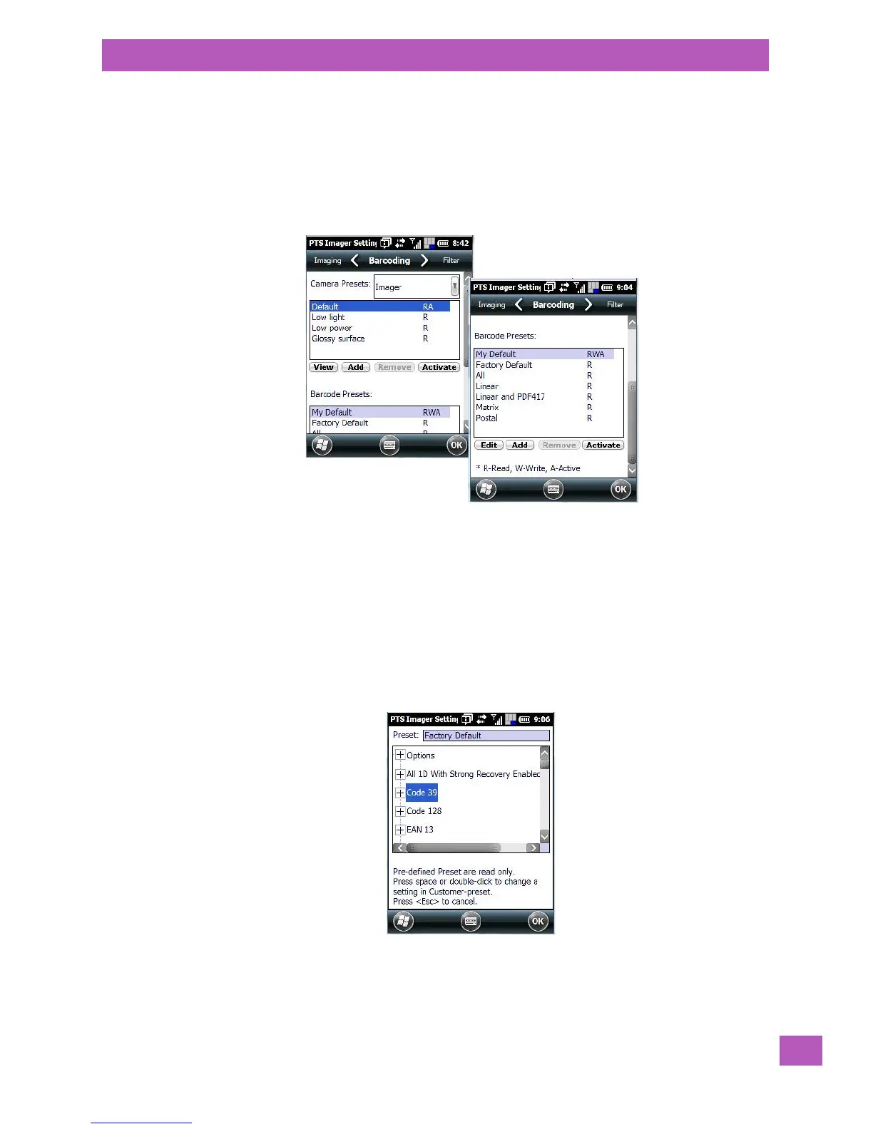C.4.7 Configuring the Bar Code Decoding Symbologies