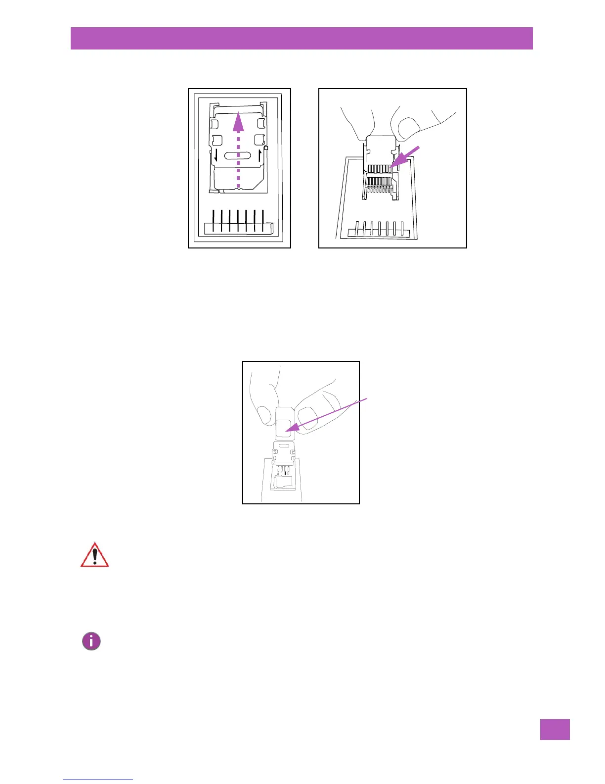 • Slide the SIM card onto the guides on the SIM card door - position the card with the connector pad