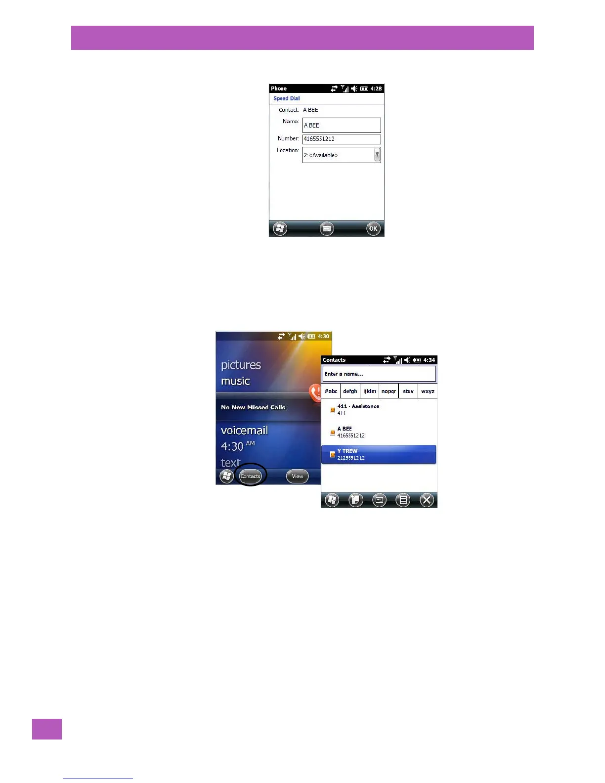 •In the Today screen list, tap on phone. Tap on the Contact softkey in the taskbar at the bottom of the