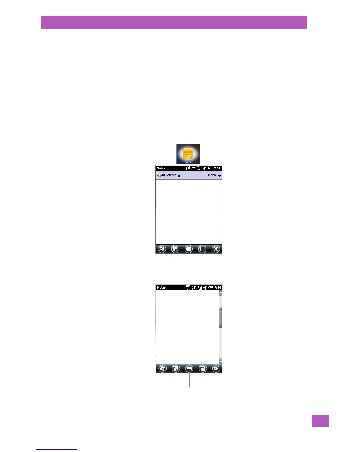 • Tap on Start>Notes to launch this application.