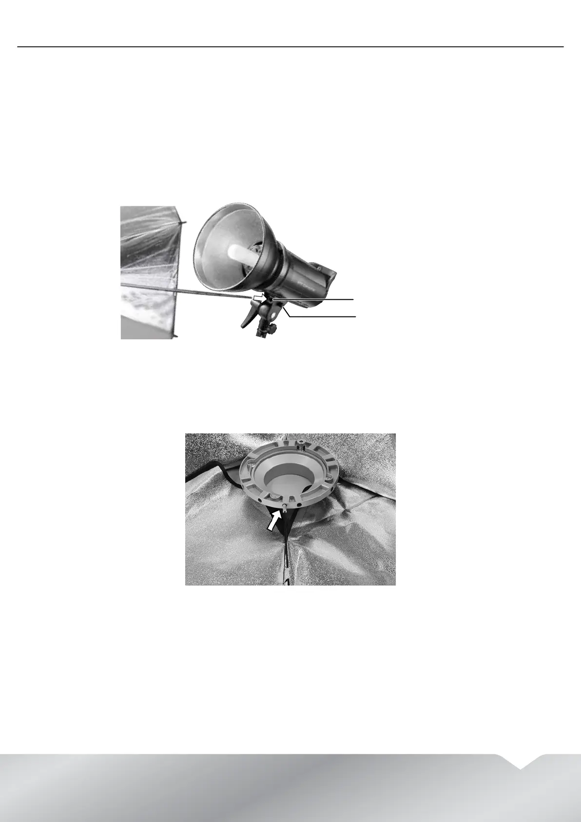 2 Place the softbox mounting bracket in the hole middle of the softbox.