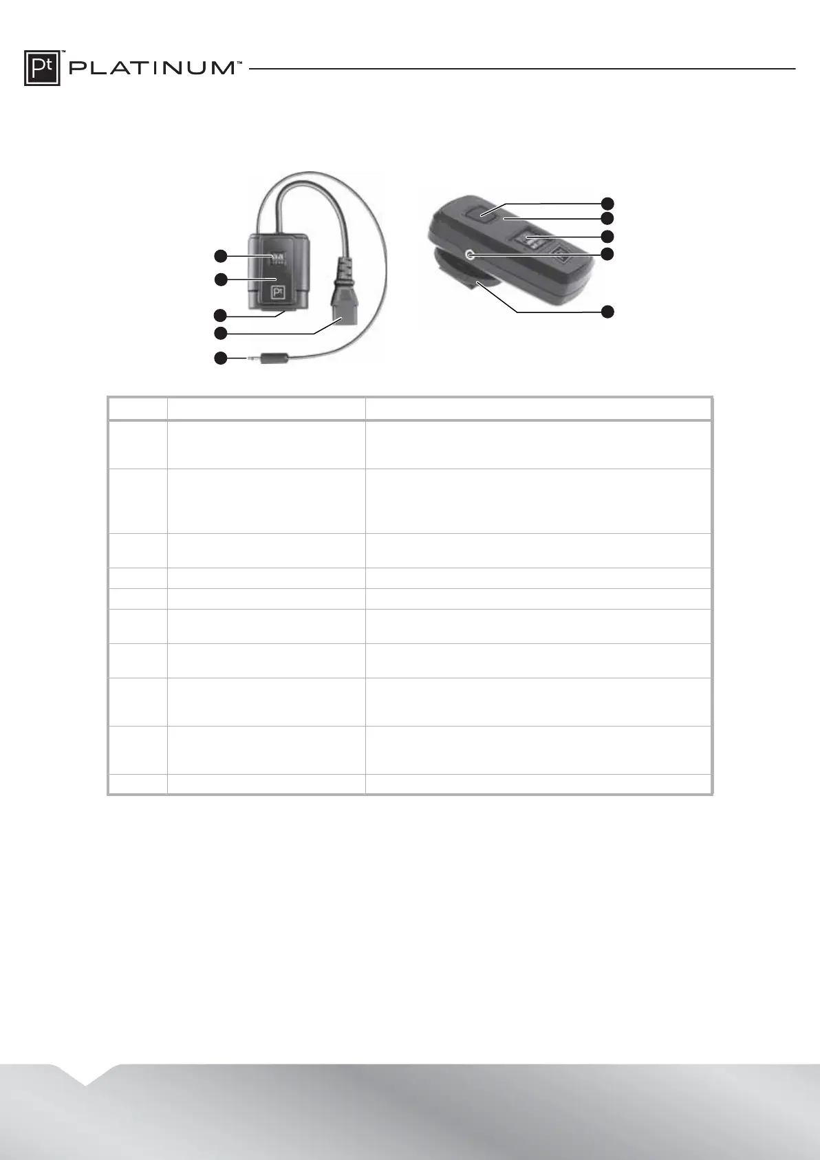10 Hotshoe connector Slide this connector into the hotshoe on the camera.