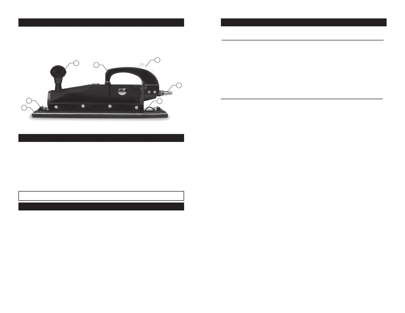 Air leakage ...................................... Use Teflon tape at all fittings and joints. Check tool for