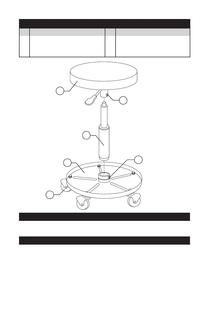 3. Attach the Seat (1) to the top of the Pneumatic Cylinder (3).