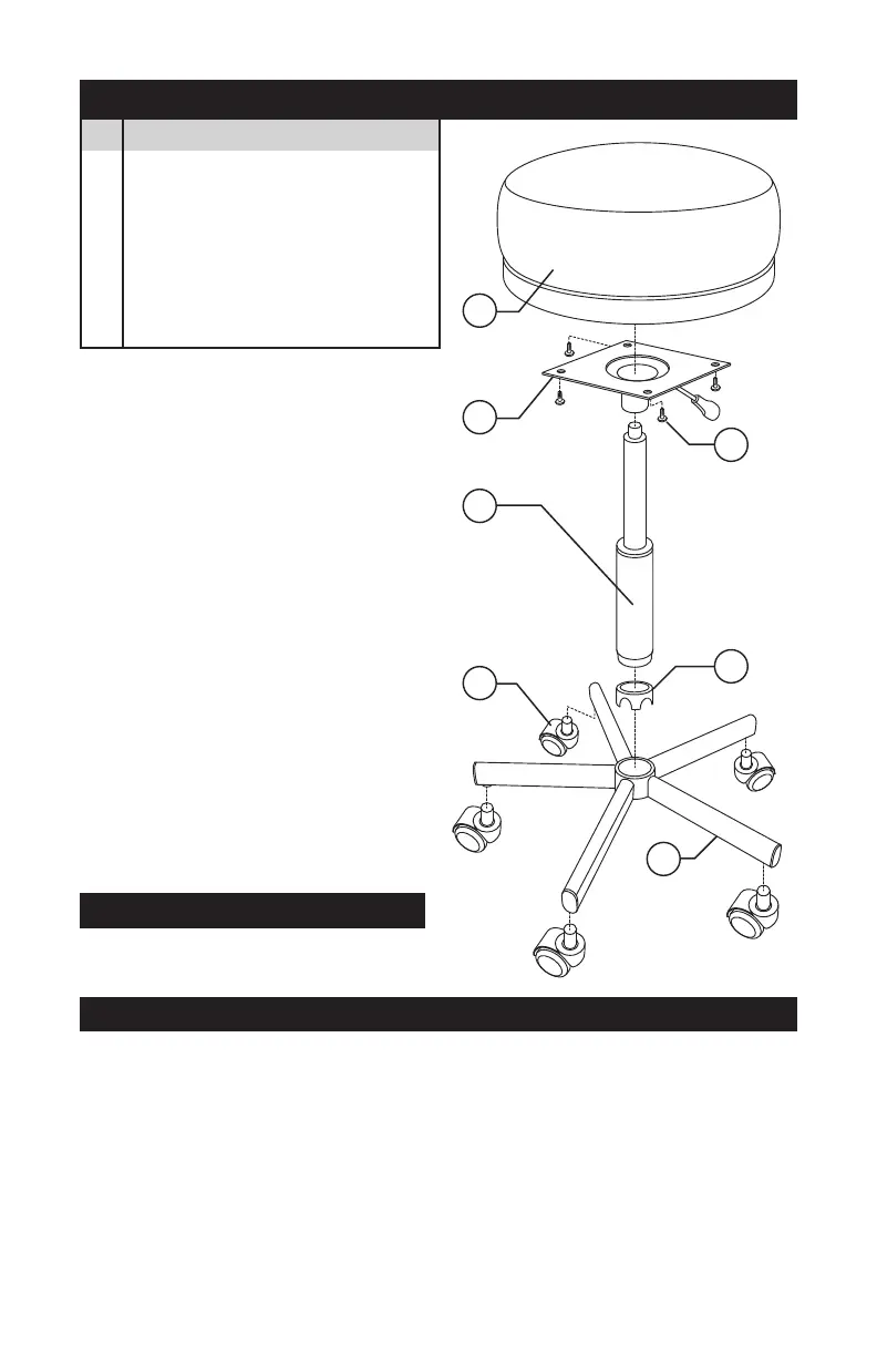 1. Place the Seat Bracket (2) on the underside of the Padded Seat (1). Align the holes in