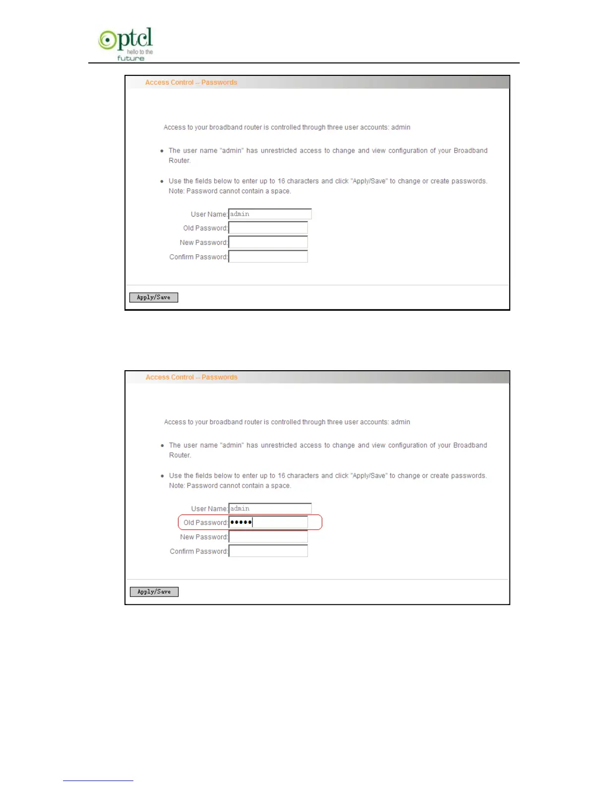 2. Enter the routers current login password in the old password