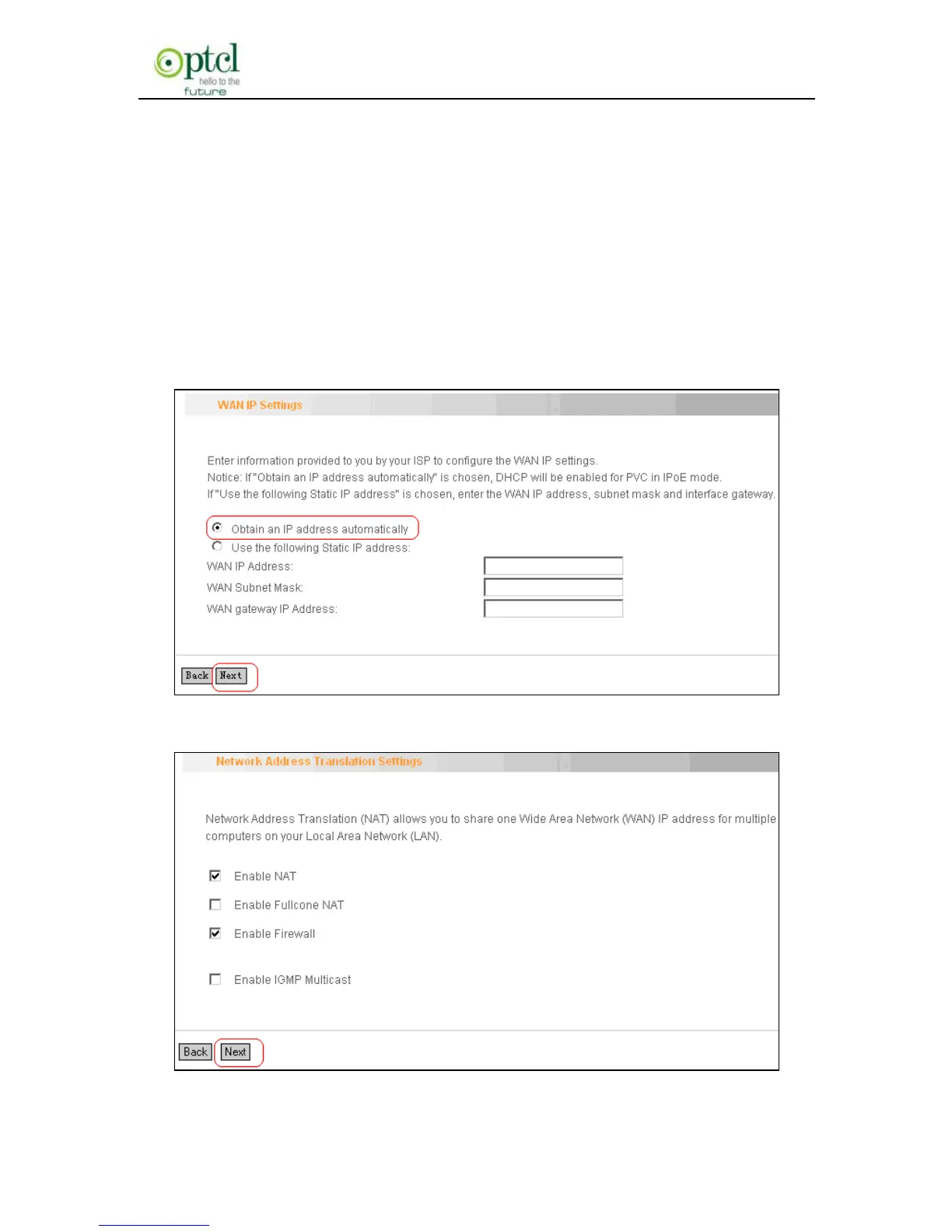 select ―Obtain an IP address automatically‖ and click the ―Next‖ button