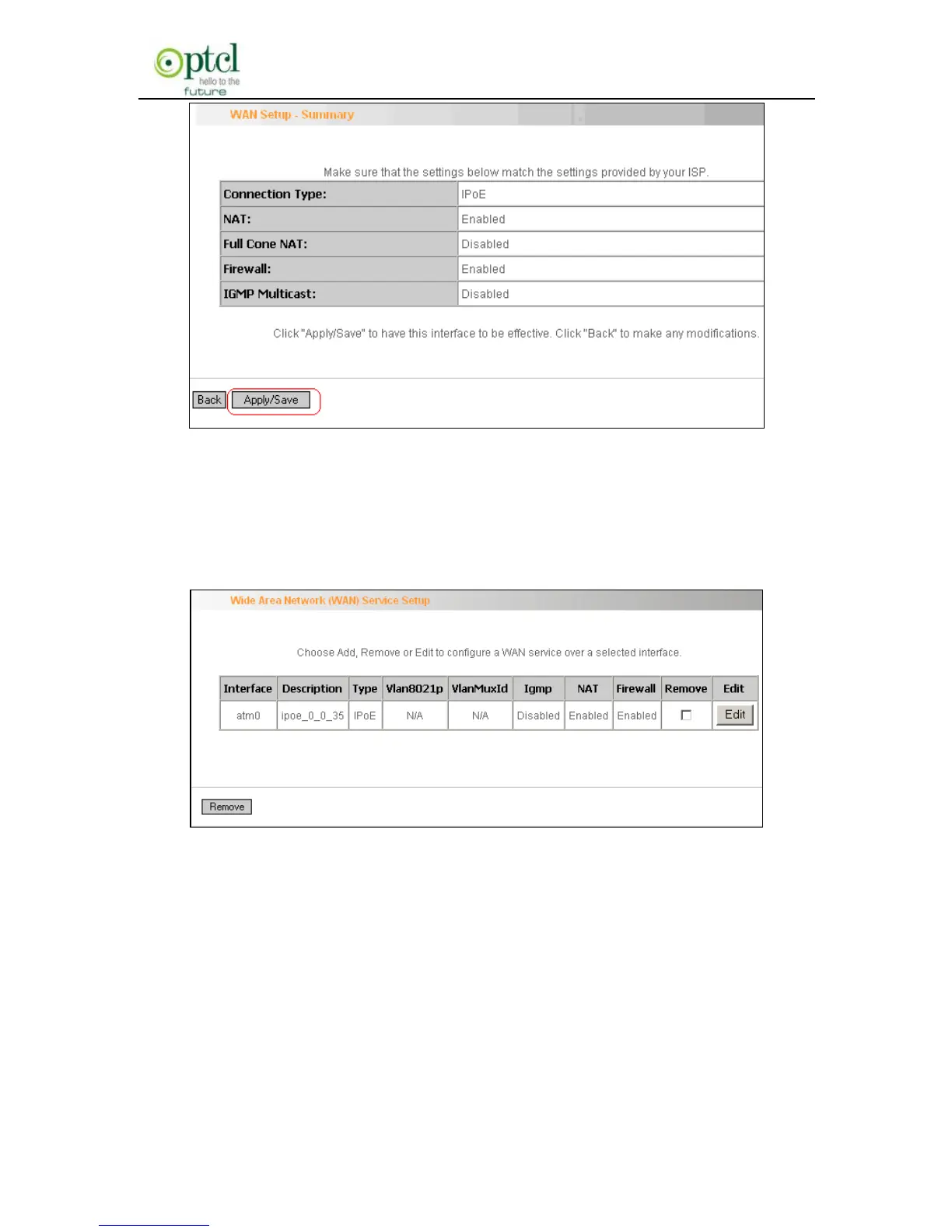 please click ―Apply/Save‖ to save it.