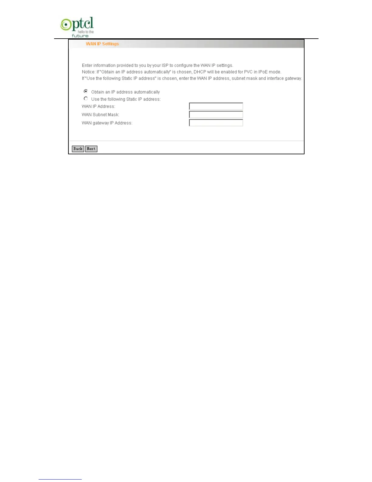 select ―Obtain an IP address automatically‖ and click the ―Next‖ button: