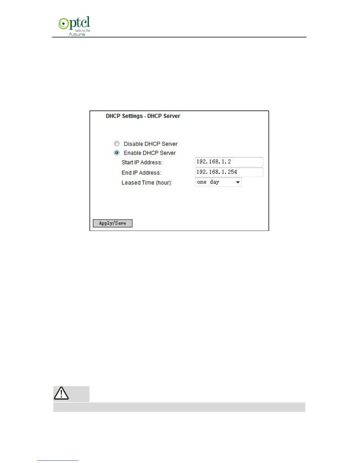 Enable/ Disable DHCP Server: Click the corresponding button to