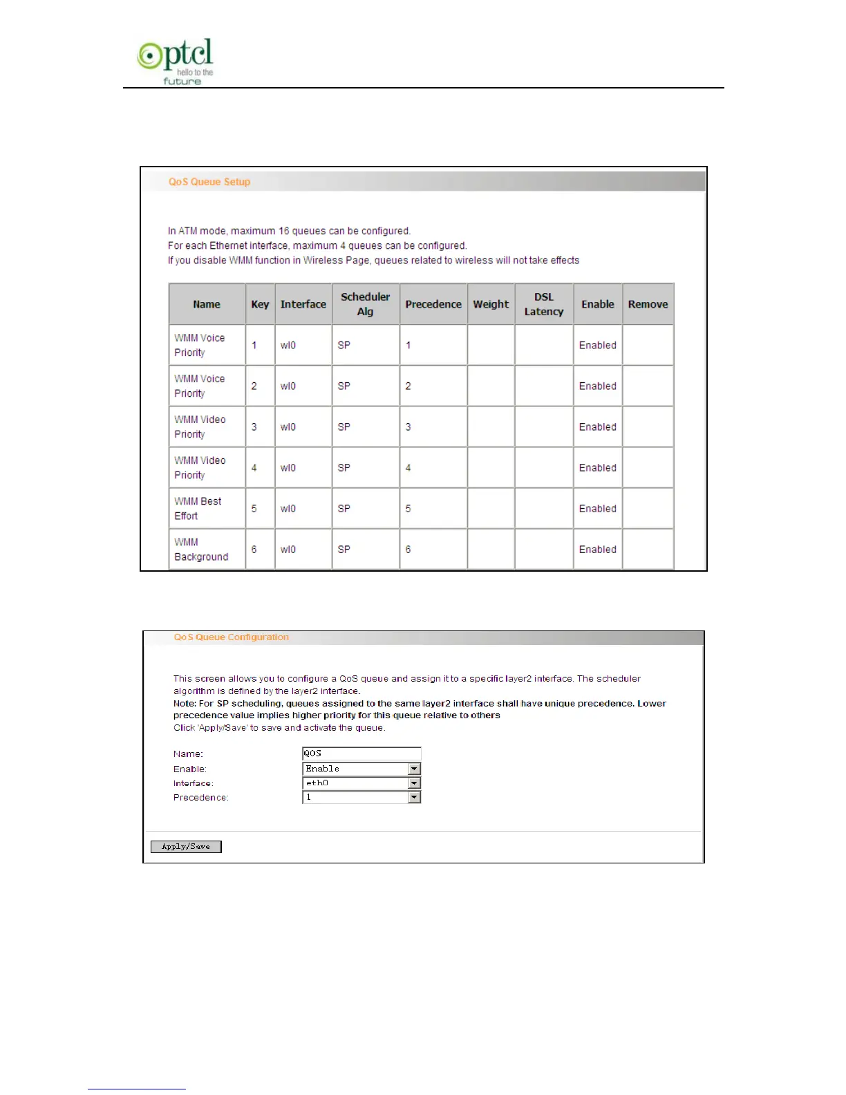 Click ―Advanced Setup‖-> ―Quality of Service‖-> ―Queue config‖ to