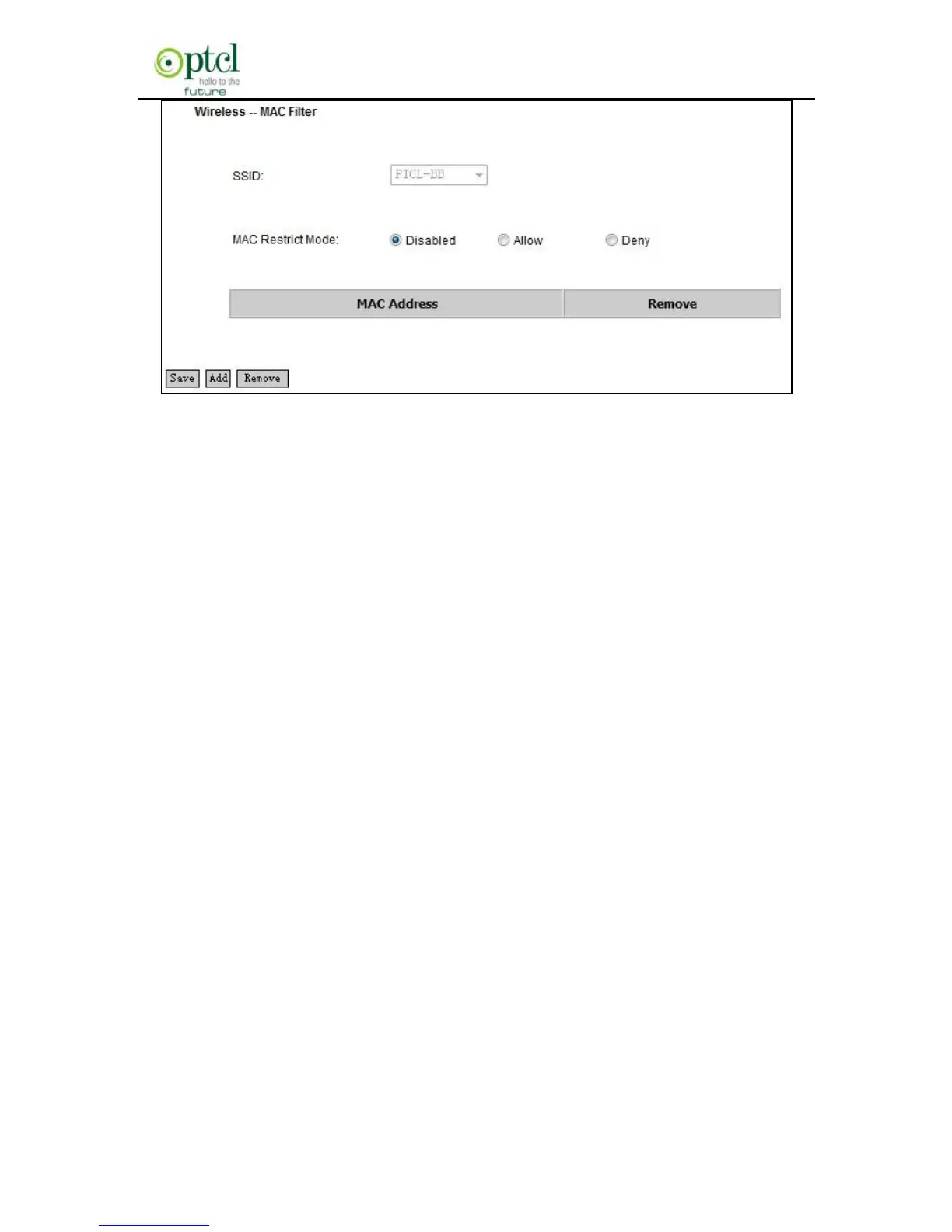 To delete an added MAC address, first check the ―Remove‖ box behind