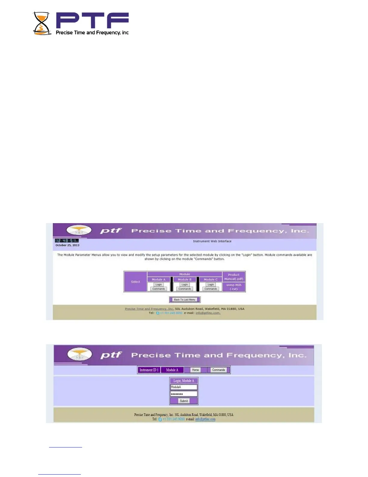 Go to Contents Precise Time and Frequency, Inc., 50L Audubon Road, Wakefield, MA 01880, USA ptf 3207A rev G