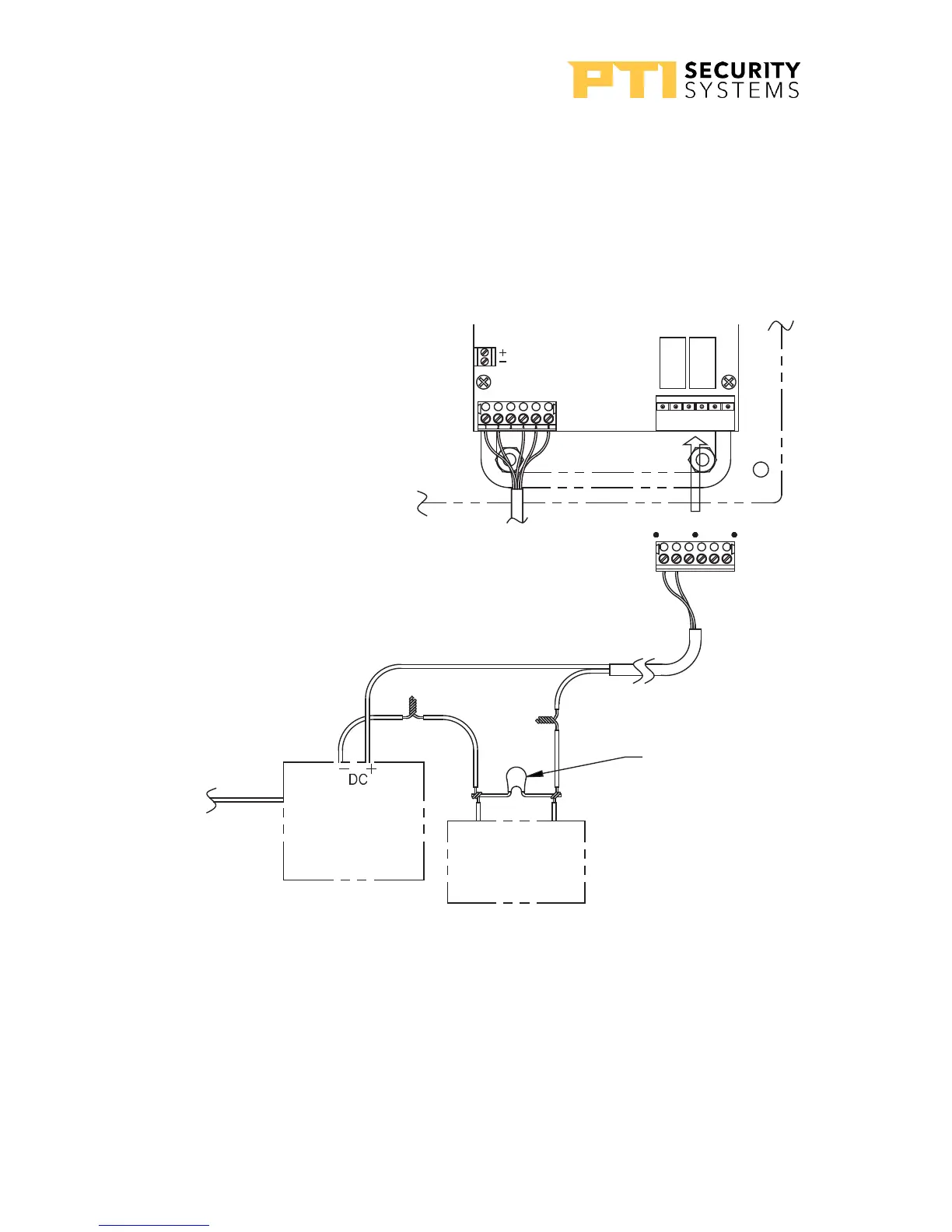 In “Drawing 18: Door strike wiring” on page 22, the two wires