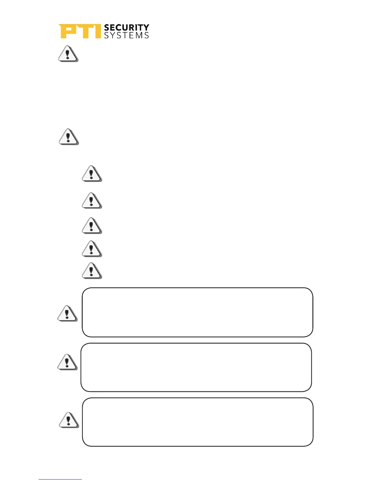 PTI Security Systems products are installed. PTI Security Systems does