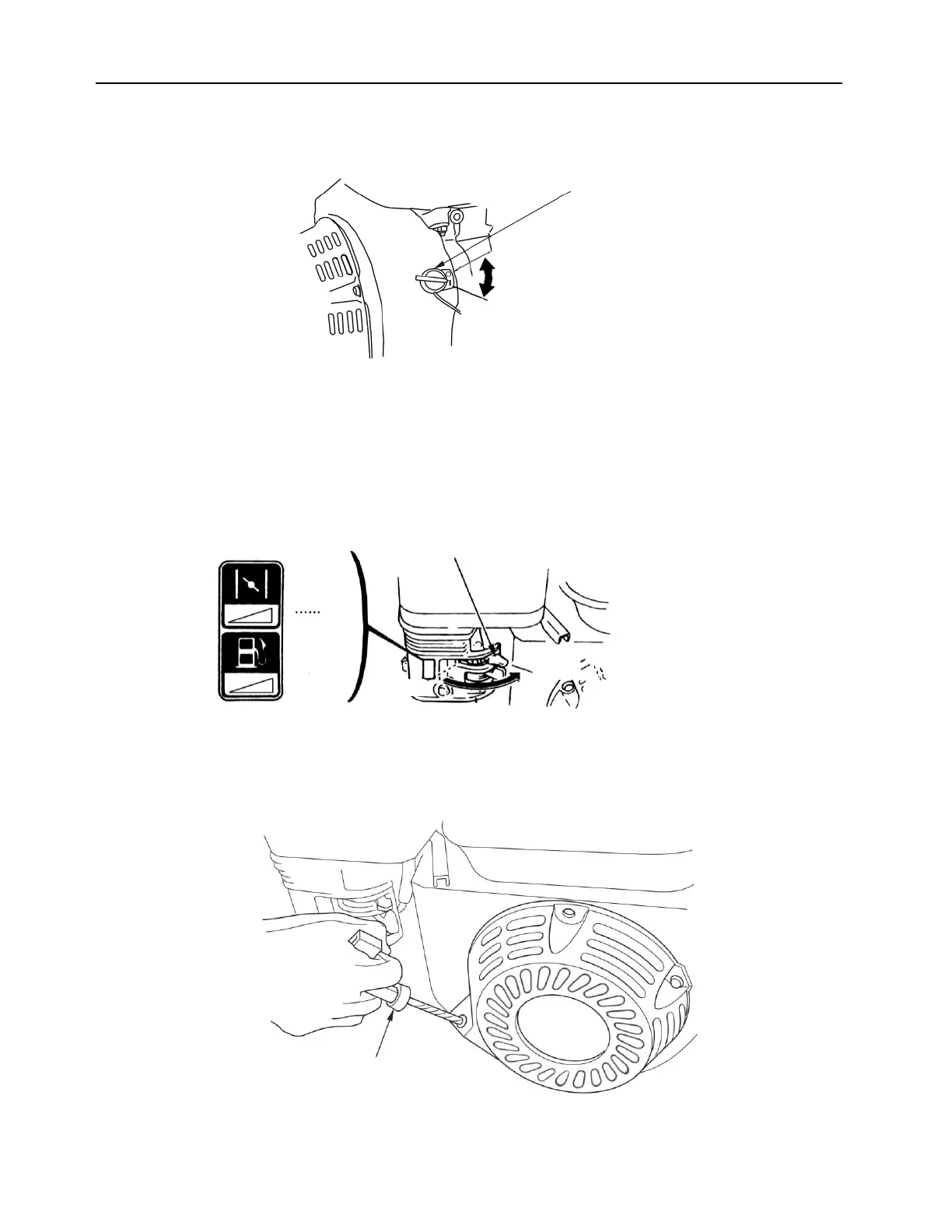 Pulling the starter grip operates the recoil starter to crank the engine.