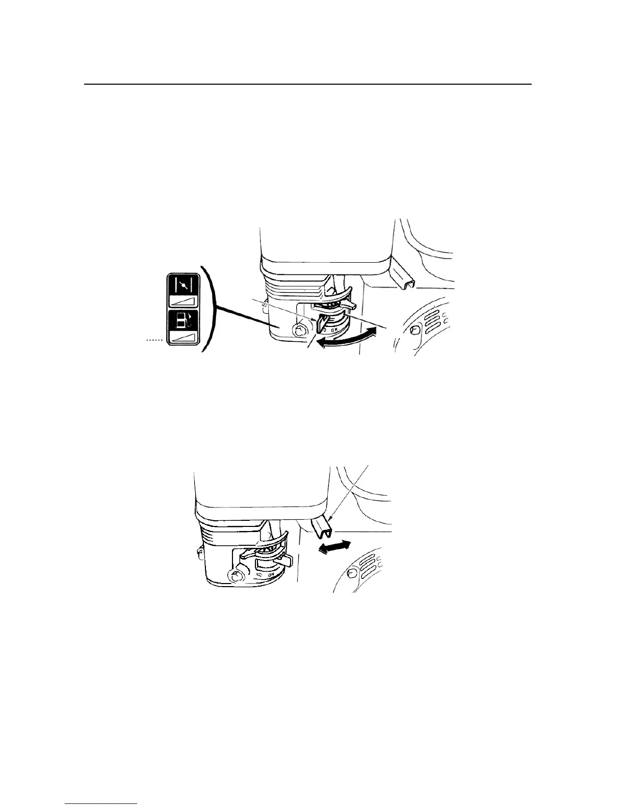 Moving the throttle lever in the directions shown makes the engine run faster or slower.