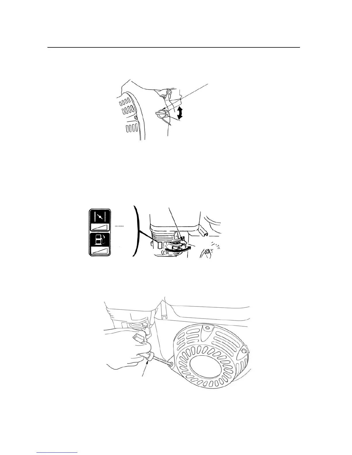 Pulling the starter grip operates the recoil starter to crank the engine.