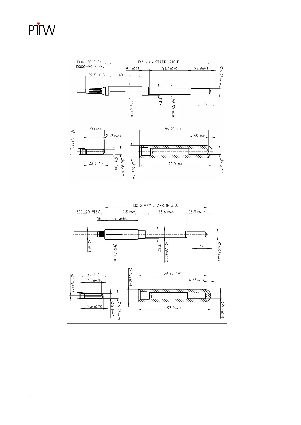 PTW 30011 - Figure 4: Drawing of the Farmer Chamber Type 30010 (Dimensions in MM); Figure 5: Drawing of the Farmer Chamber Type 30013 (Dimensions in MM)