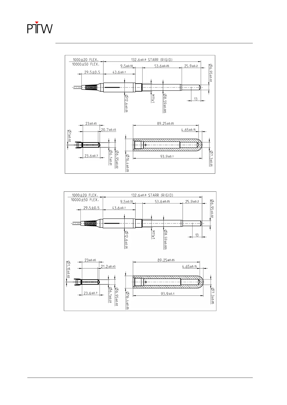 PTW 30011 - Figure 6: Drawing of the Farmer Chamber Type 30011 (Dimensions in MM); Figure 7: Drawing of the Farmer Chamber Type 30012 (Dimensions in MM)
