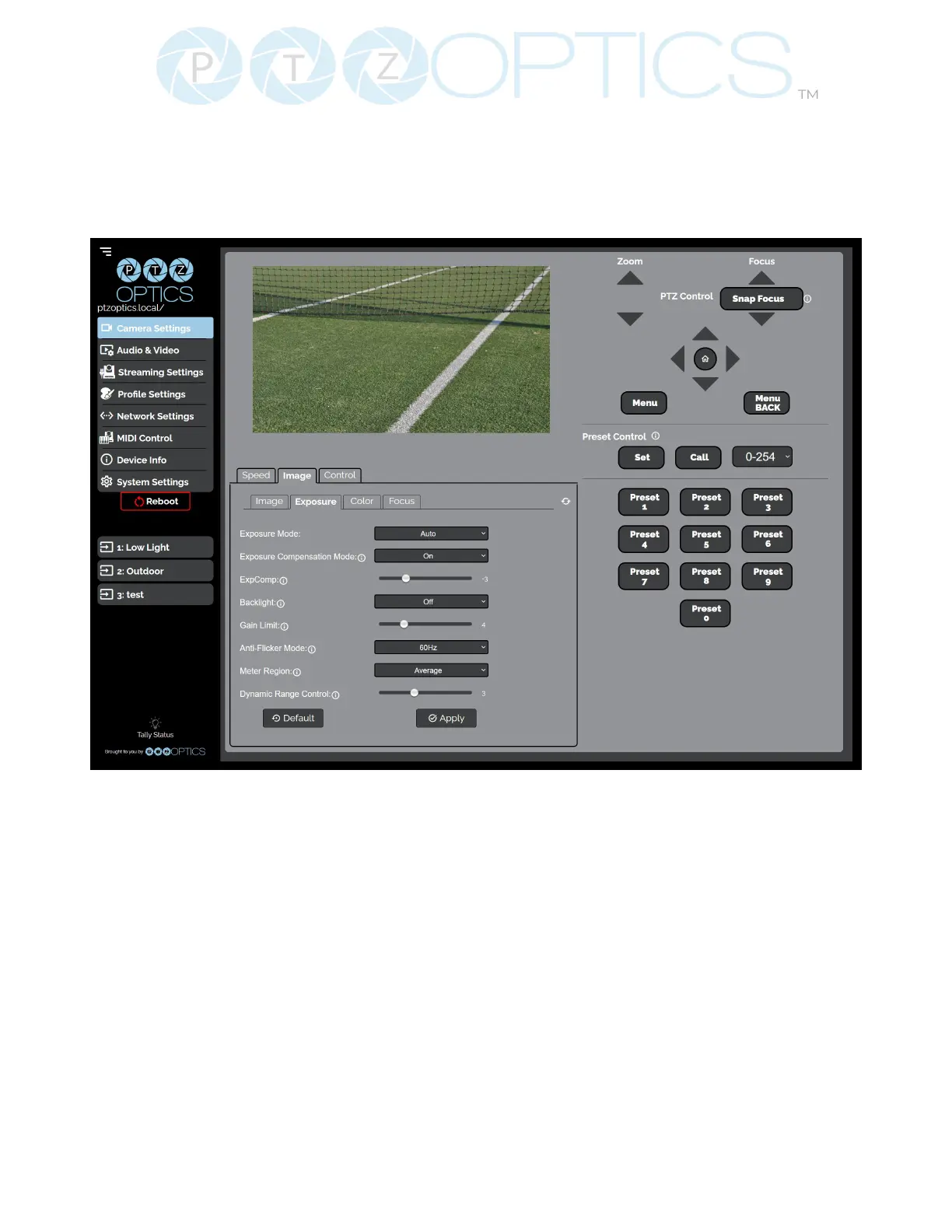 PTZOptics Move 4K - Camera Settings - Exposure Control