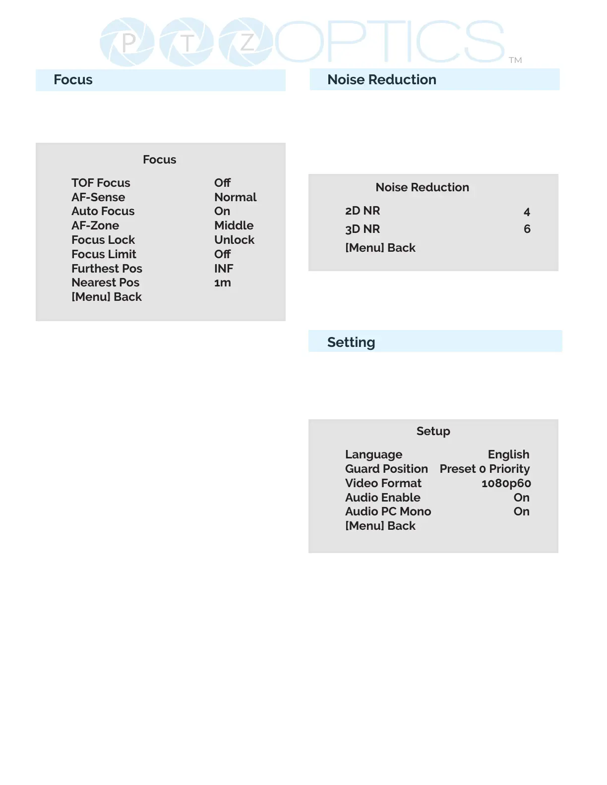 Auto Focus: On, O, One Push