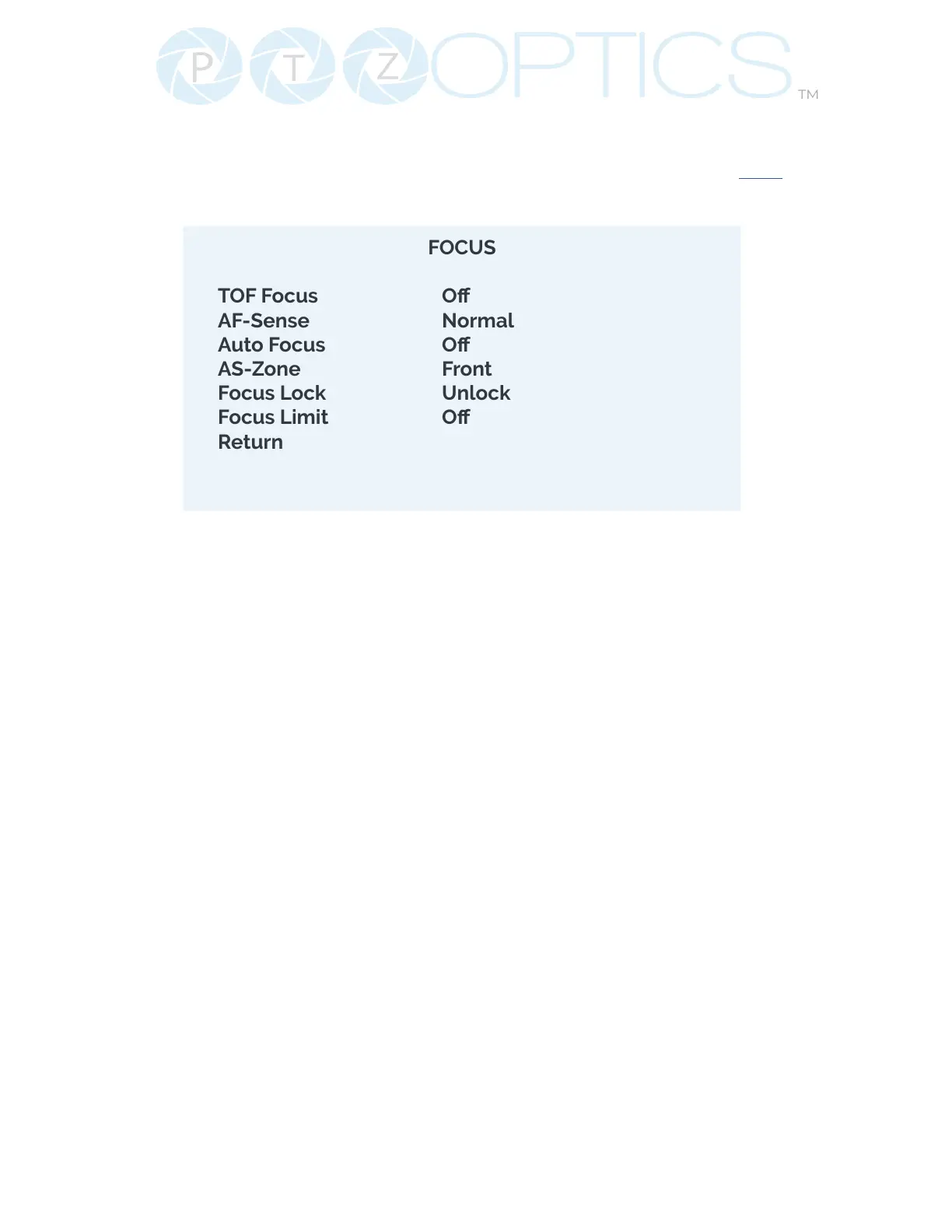 Return to the main menu and scroll down to select the Focus Menu. Please copy the settings