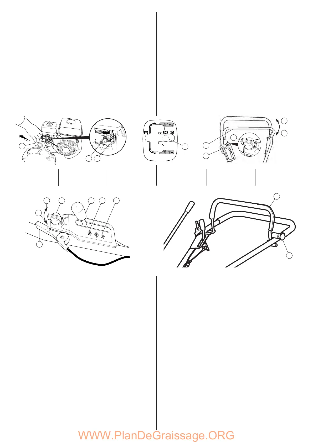 d. Placez le levier de régime moteur en position moyenne. (7)